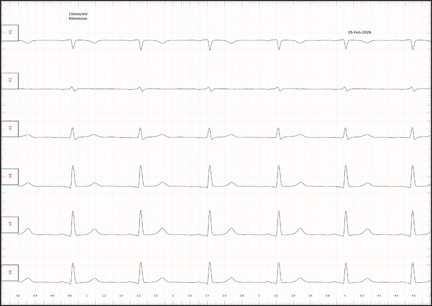 Representación del ECG convencional de 12 derivaciones, junto con las derivaciones extendidas V7–V9 y Vr3–Vr6, conforme a las guías de la ESC. Estas derivaciones adicionales permiten visualizar elevaciones del segmento ST que no siempre se detectan en el ECG estándar, lo que facilita un diagnóstico más fiable del infarto.